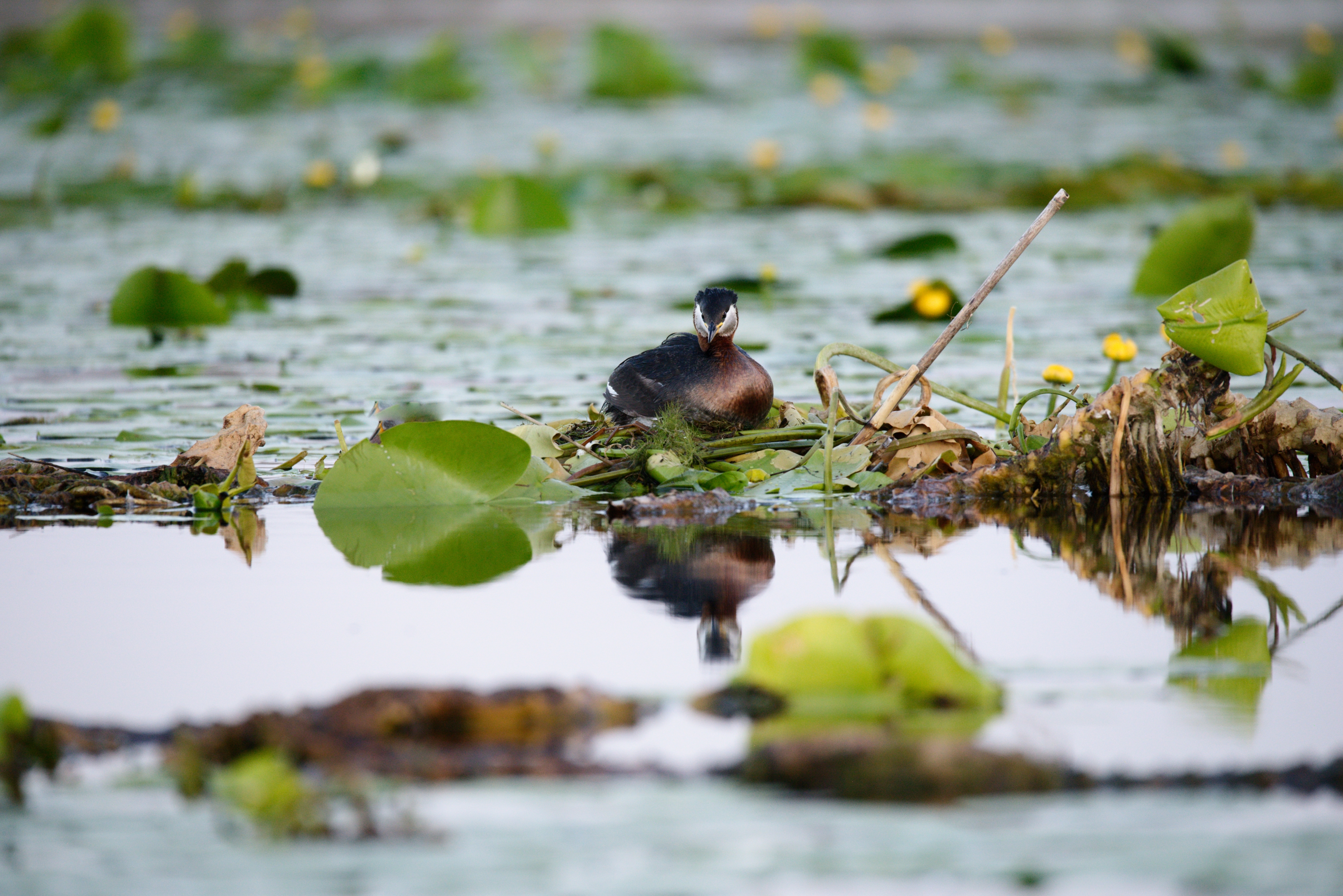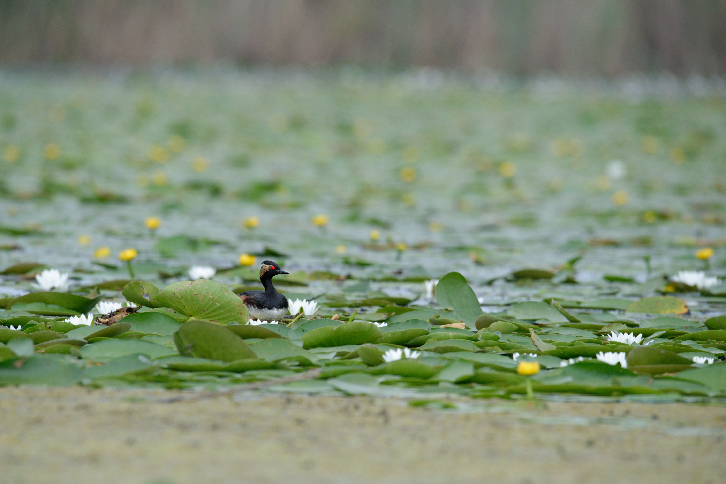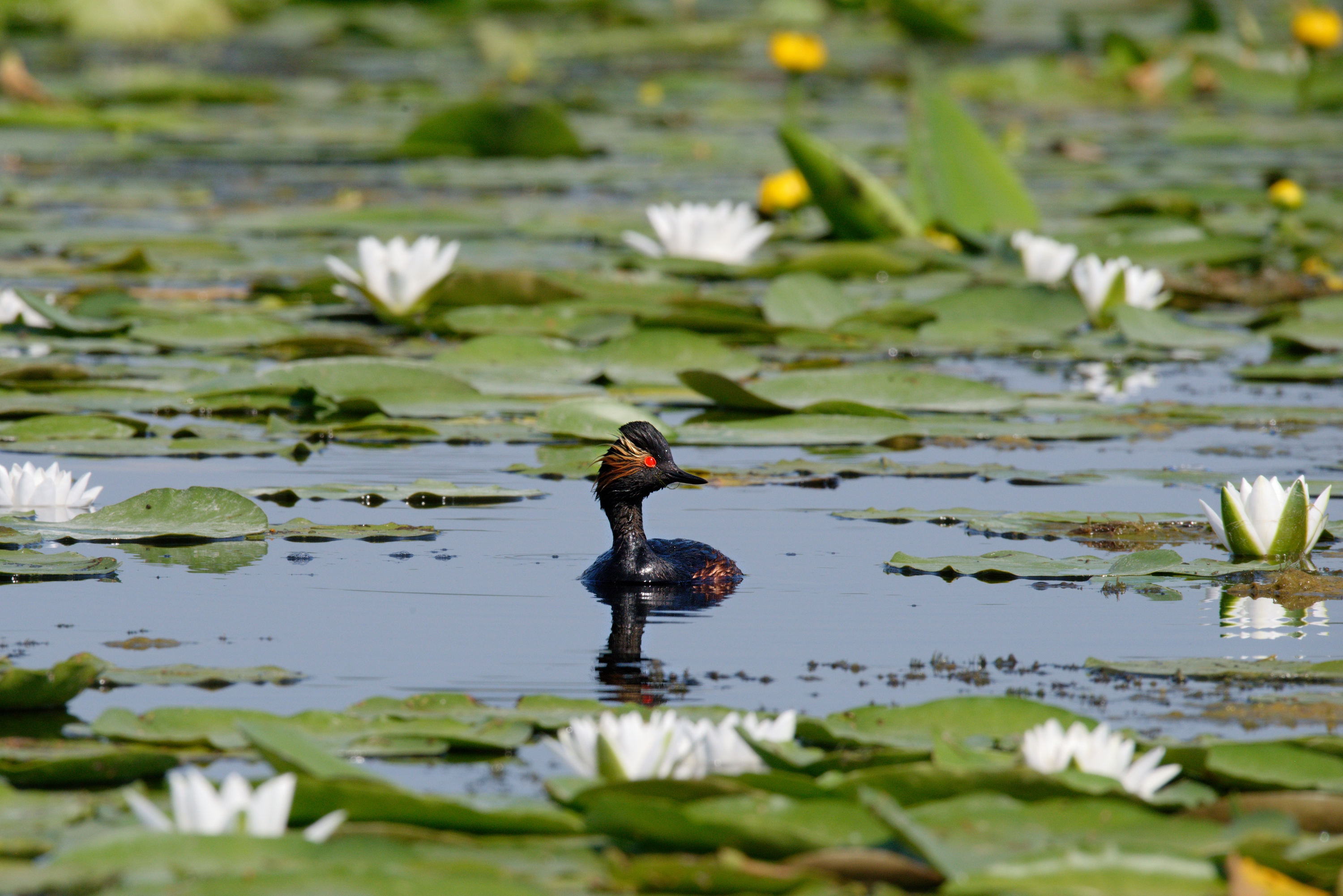 Grèbe à cou noir mélanocéphale